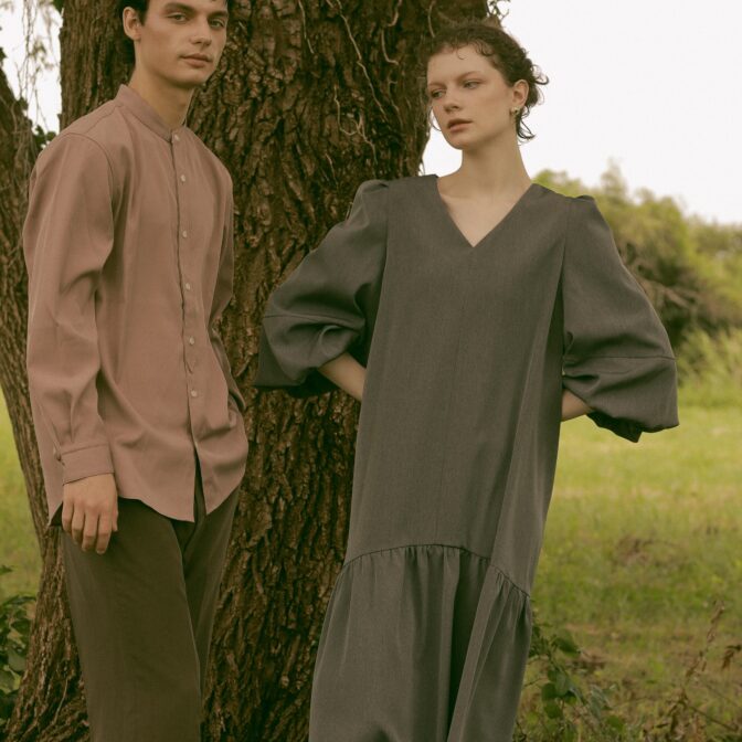オーセンティックなデザインのバンドカラーシャツデザイン。