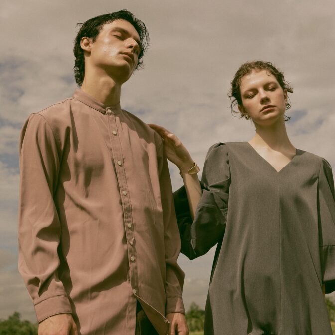エスウールバンドカラーシャツ/エスウールパフスリーブワンピース(ペア)